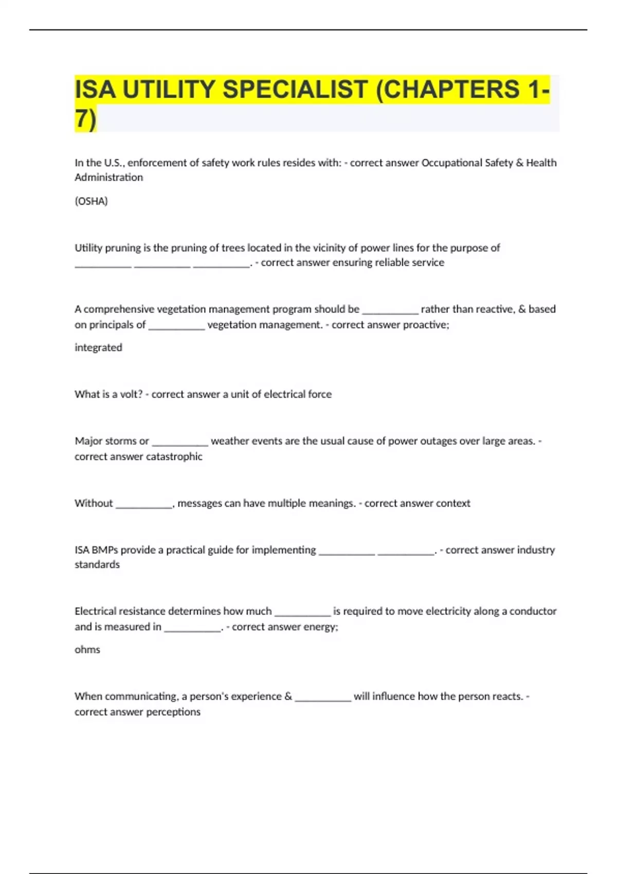 ISA Utility Arborist Master Study Set (All Sections)(solved)