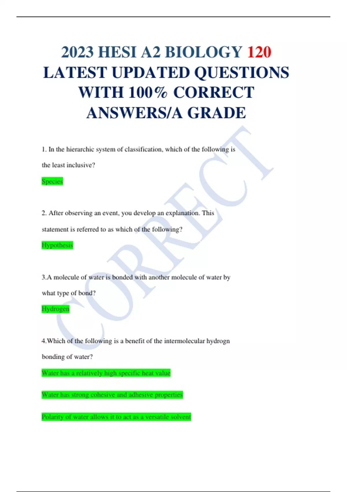2023 HESI A2 BIOLOGY LATEST UPDATED QUESTIONS WITH 100% CORRECT ANSWERS/A+ GRADE