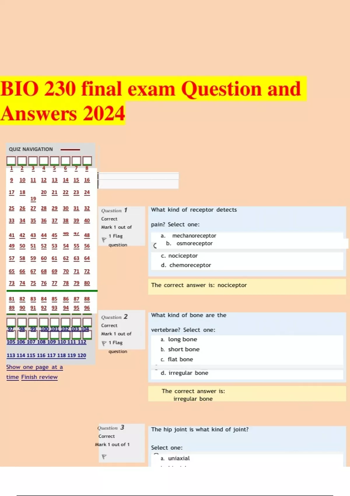 BIO 230 final exam Question and Answers 2024