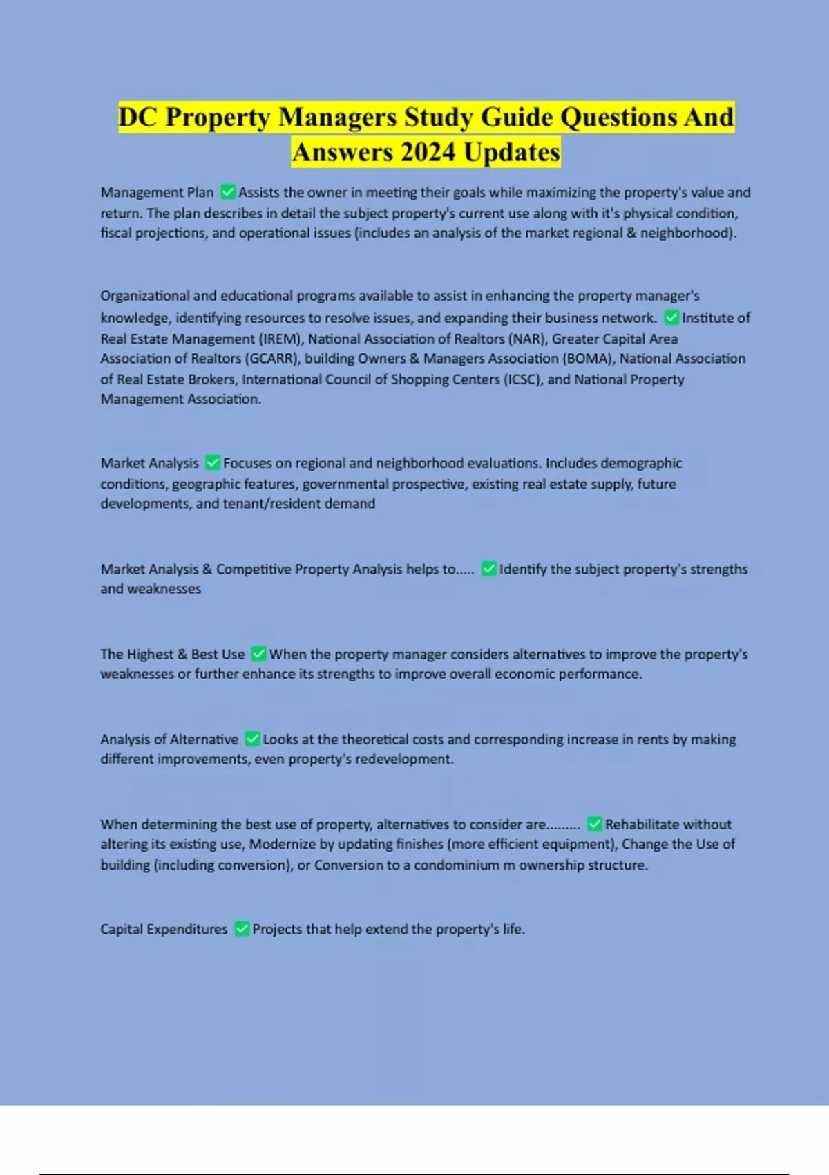 DC Property Manager | DC Real Estate Law Full Course Package Deal Rated A+ DC Test Questions And Answers With Complete Study Solutions DC Real Estate Law Verified Questions And Answers | Complete Update DC Property Manager Exam Questions And Answer DC Real Estate License Exam | Questions And Answers With Latest Solutions