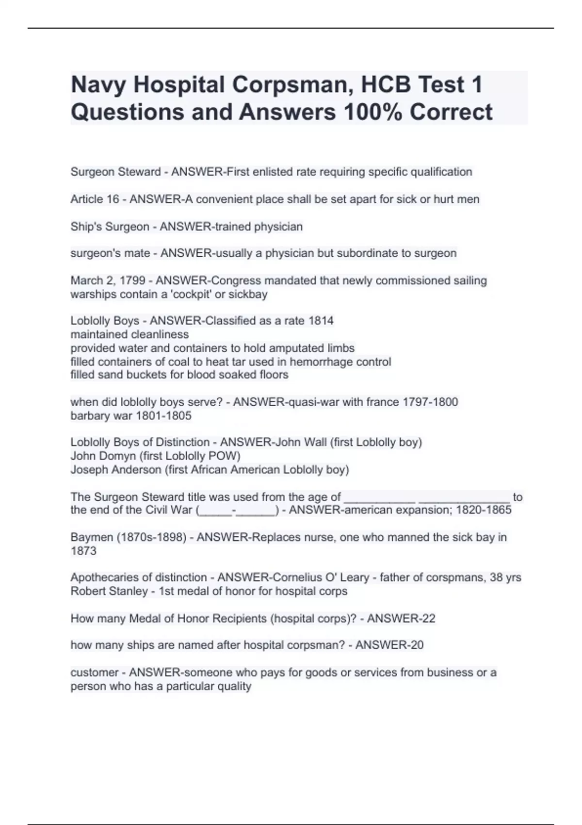 Navy Hospital Corpsman, HCB Exam BUNDLE with Complete SolutionsNavy Hospital Corpsman, HCB Exam BUNDLE with Complete SolutionsNavy Hospital Corpsman, HCB Exam BUNDLE with Complete SolutionsNavy Hospital Corpsman, HCB Exam BUNDLE with Complete SolutionsNavy Hospital Corpsman, HCB Exam BUNDLE with Complete SolutionsNavy Hospital Corpsman, HCB Exam BU