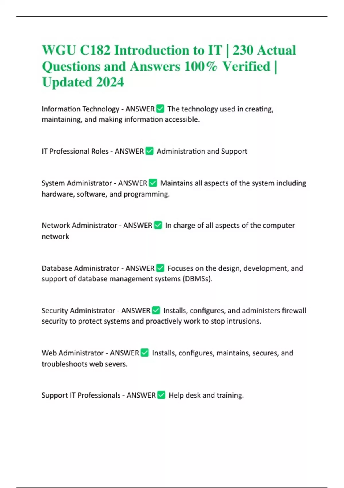 WGU C182 Introduction to IT | 230 Actual Questions and Answers 100% Verified | Updated 2024