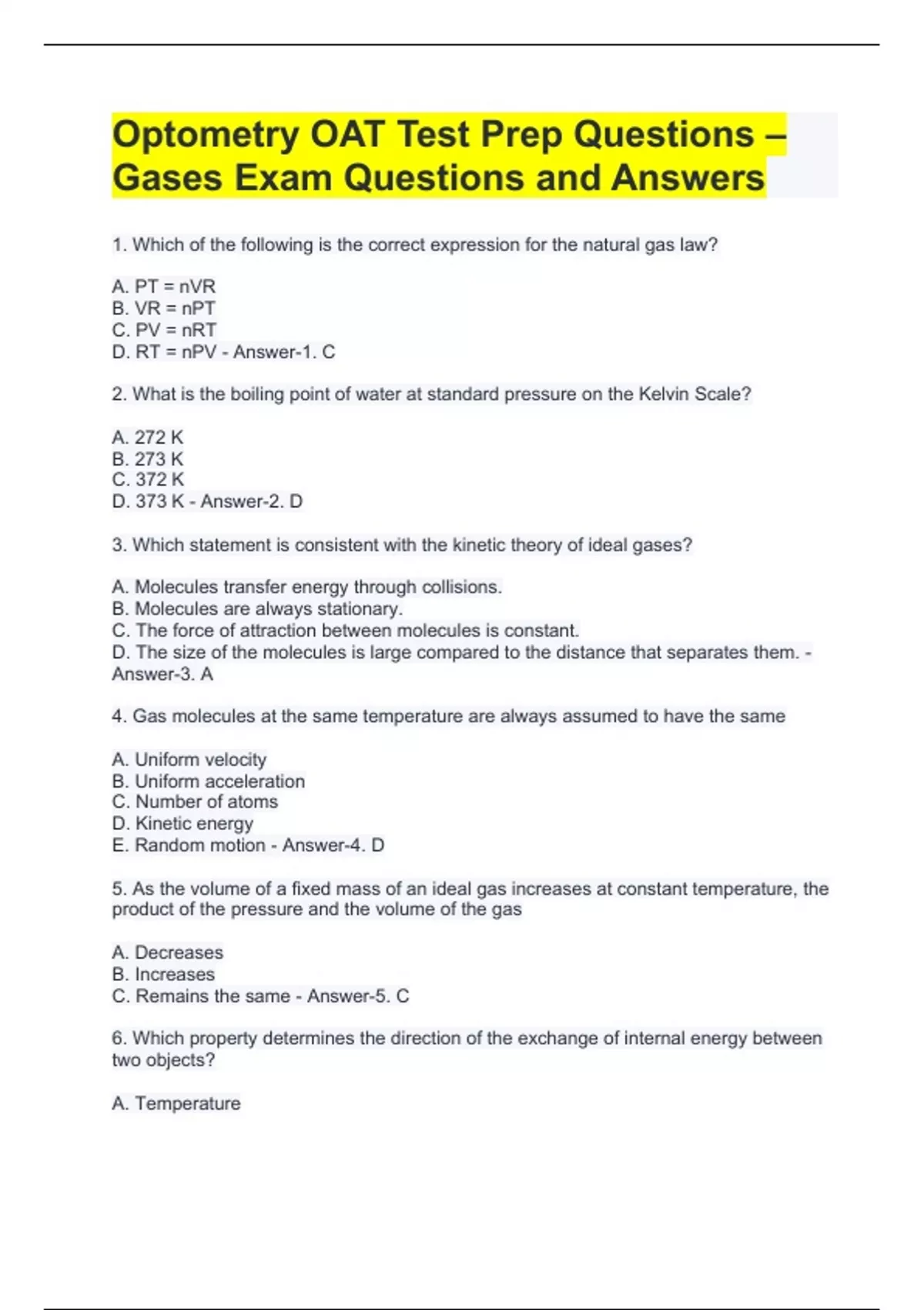 Exam (elaborations) OAT Exam Questions with Verified Answers Exam (elaborations) OAT endocrine system exam questions with verified answers Exam (elaborations) OAT Electrochemistry Exam Guide Questions and Answers Exam (elaborations) oat ecology Exam Guide with Latest Update Exam (elaborations) OAT Bootcamp Physics Formulas Exam Questions w