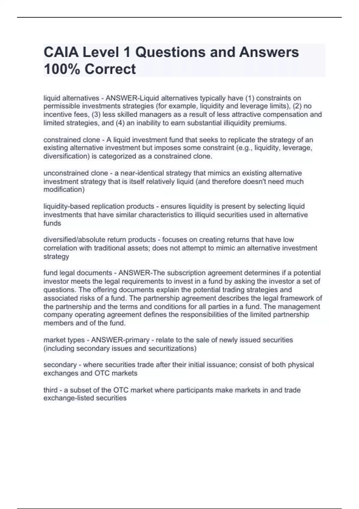 CAIA Level 1 &2 EXAM BUNDLE With Complete SolutionsCAIA Level 1 &2 EXAM BUNDLE With Complete SolutionsCAIA Level 1 &2 EXAM BUNDLE With Complete SolutionsCAIA Level 1 &2 EXAM BUNDLE With Complete SolutionsCAIA Level 1 &2 EXAM BUNDLE With Complete SolutionsCAIA Level 1 &2 EXAM BUNDLE With Complete SolutionsCAIA Level 1 &2 EXAM BUNDLE With Complete So