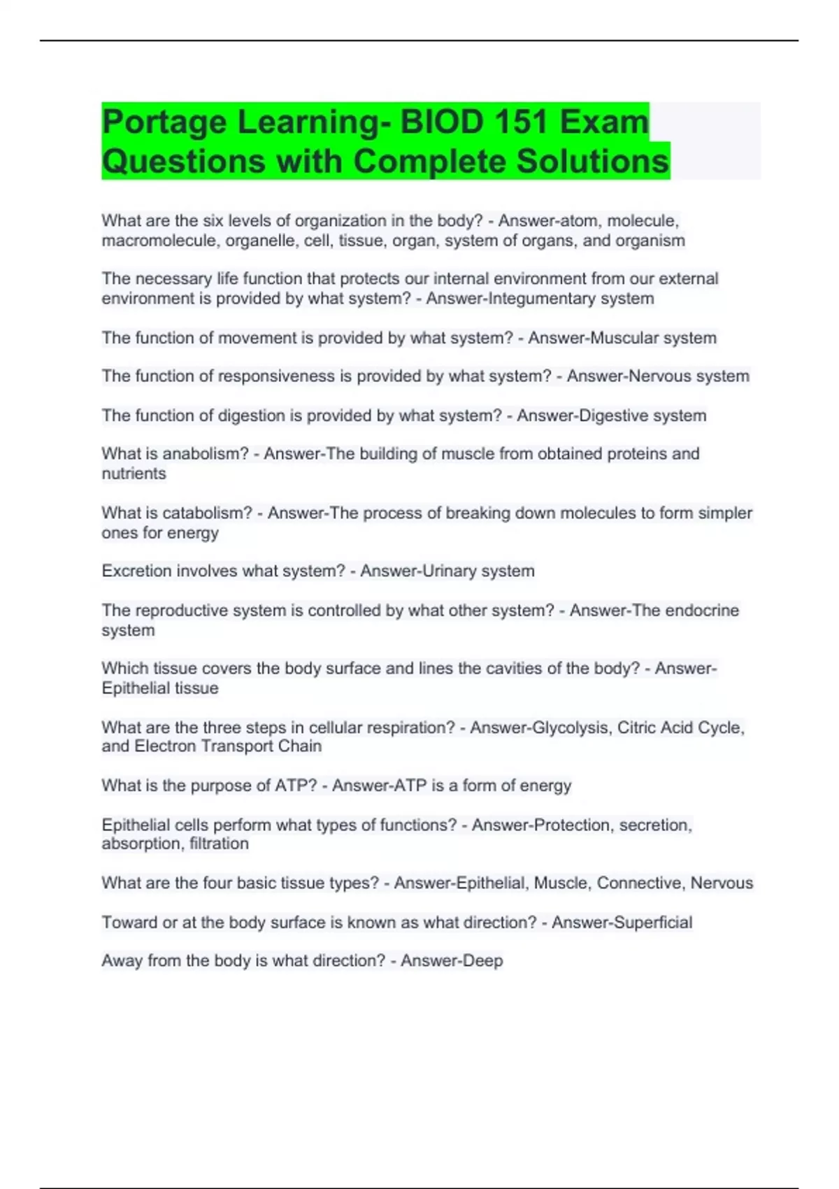 Portage Learning- BIOD 151 Exam Questions with Complete Solutions