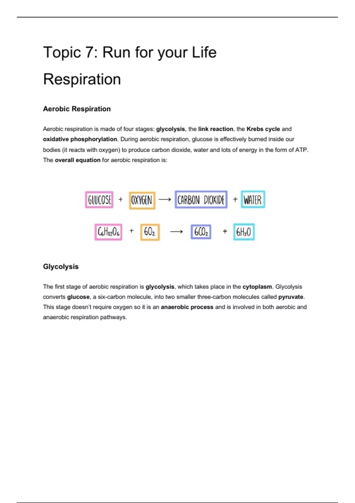 Summary Edexcel IAL Topic 7 Respiration Biology notes