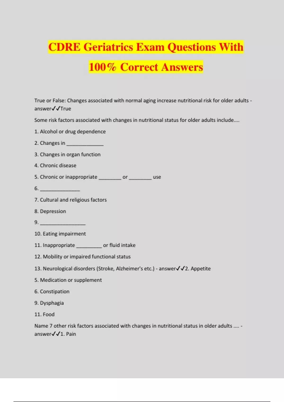 CDRE Geriatrics Exam Questions With 100% Correct Answers