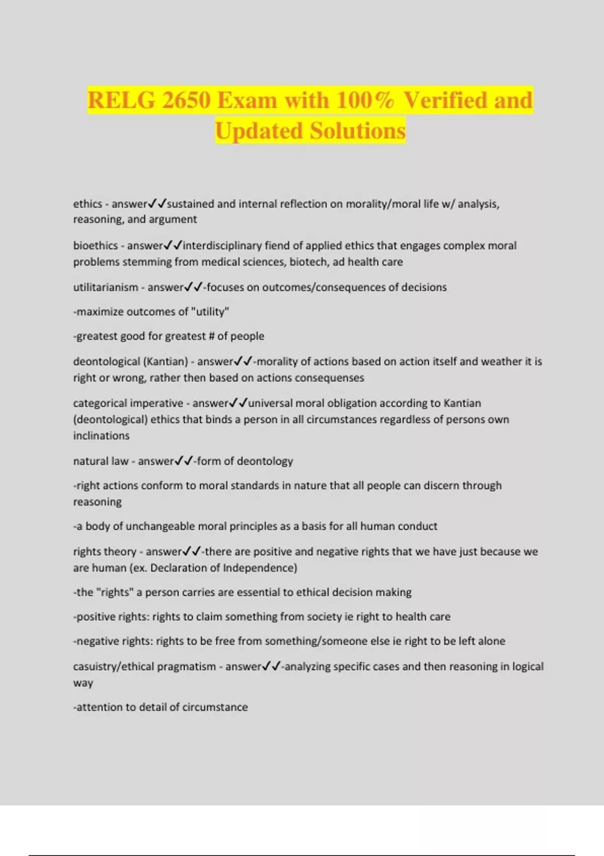 RELG 2650 MIDTERM EXAM QUESTIONS WITH 100% VERIFIED AND UPDATED SOLUTIONS