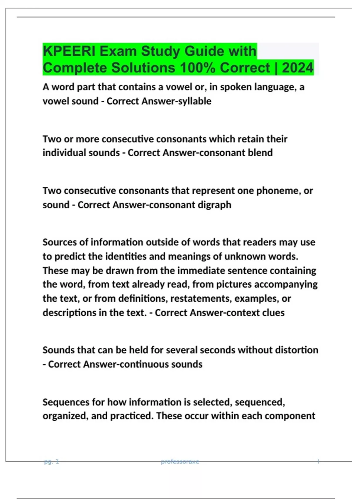 KPEERI Exam Questions with 100% Correct Answers | Verified | Updated 2024 KPEERI Study Guide #2 Questions and Answers with Complete Solutions 100% Correct | 2024 KPEERI Test Prep Questions With 100% Correct Answers 2024 KPEERI Exam Study Guide with Complete Solutions 100% Correct | 2024
