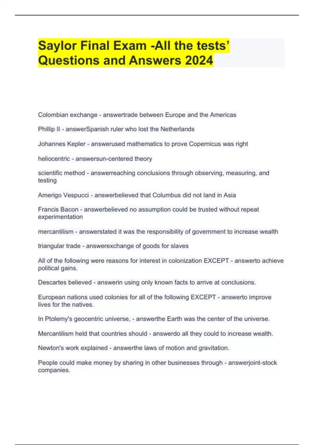 Exam (elaborations) Saylor BUS300 Module 1 Course Materials-Study Guide Questions and Answers 2024 Exam (elaborations) SOC101. Introduction to Sociology Unit 1 (Saylor Academy) Questions and Answers 2024 Exam (elaborations) Saylor Final Exam Study Guide Questions and Answers Latest Updated Exam (elaborations) BIO101 – Saylor Questions and An