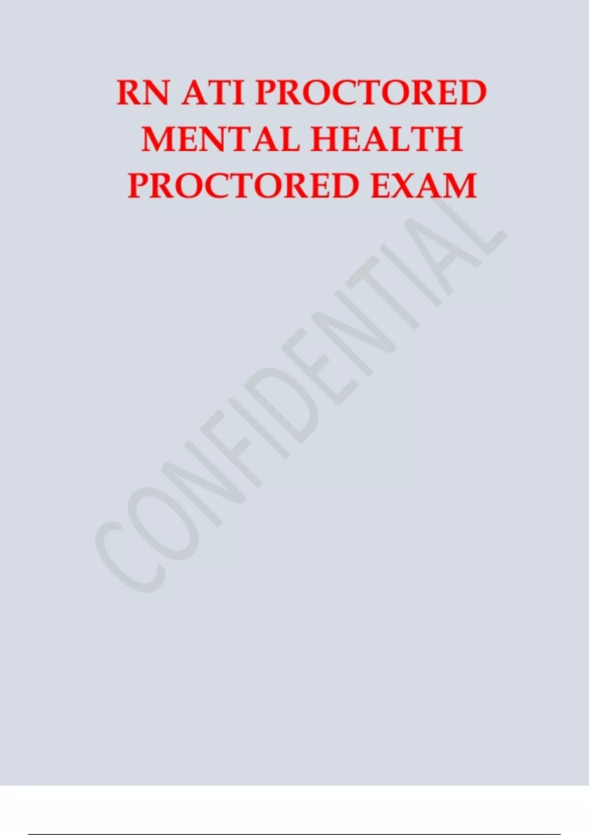 ATI PROCTORED MENTAL HEALTH PROCTORED EXAM 2024. ATI RN Capstone Mental Health Pre ATI RN Capstone Mental Health Pre-Assessment