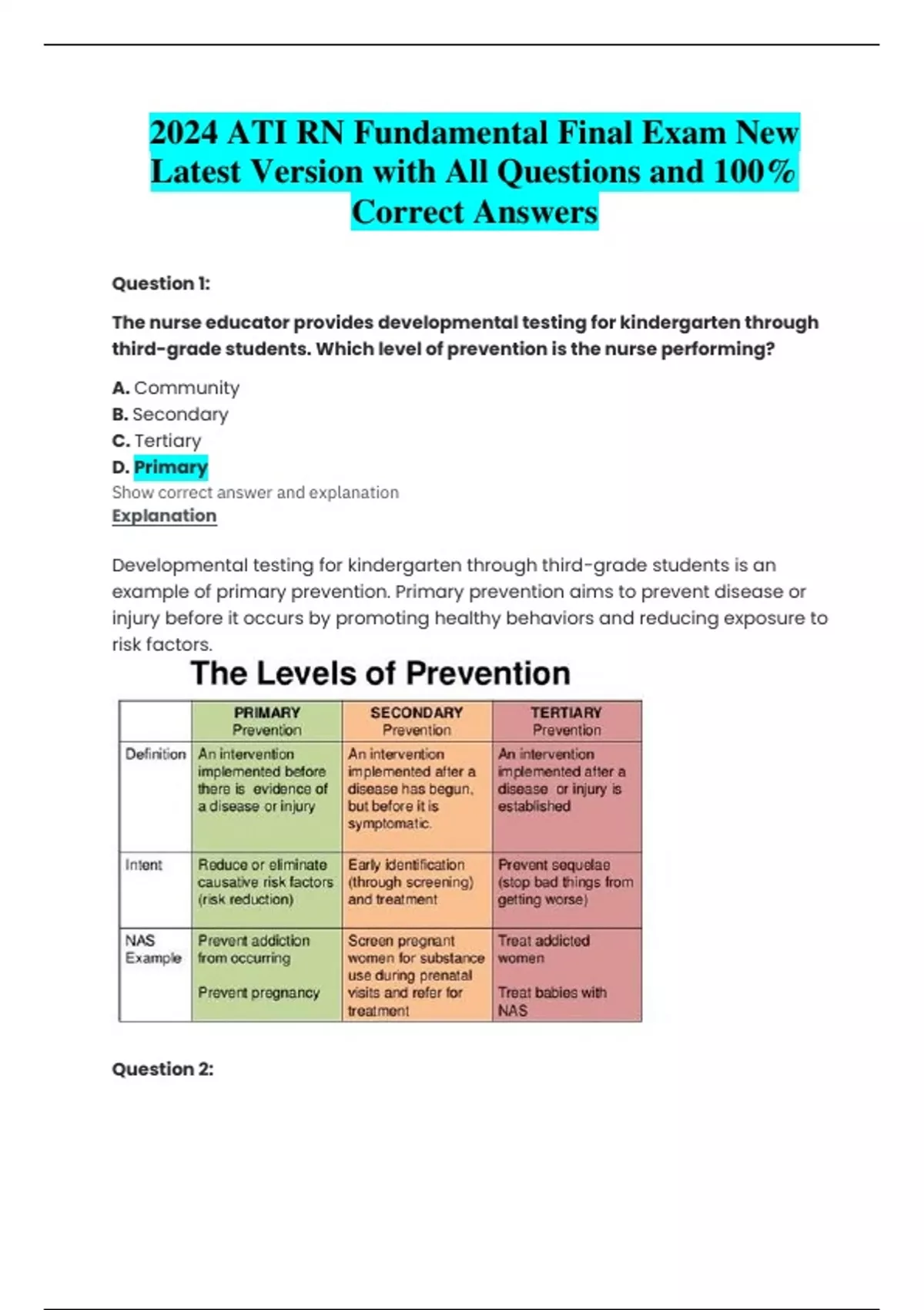 2024 ATI RN Fundamental Final Exam New Latest Version with All Questions and 100% Correct Answers