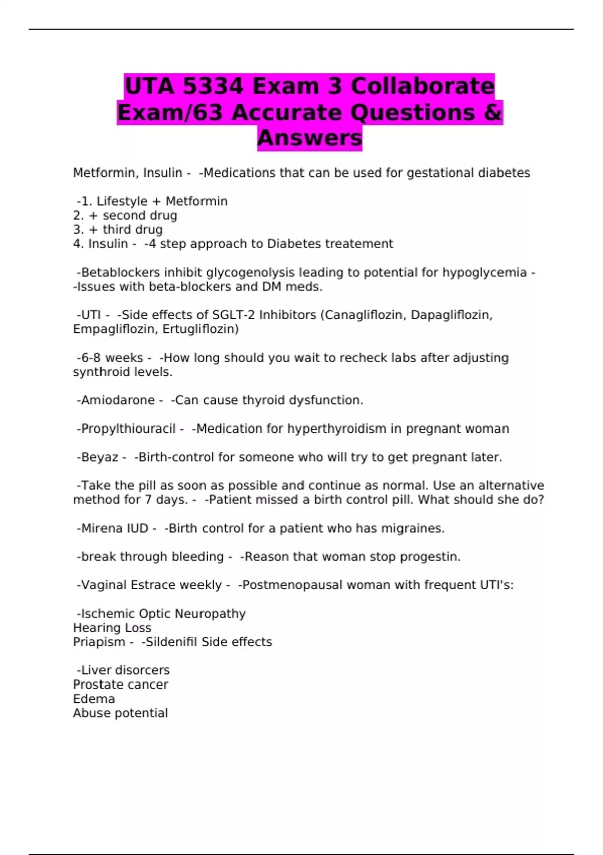 NURS 5334 Pharm Exam 3 Mod 6 DM/42 Questions and Answers