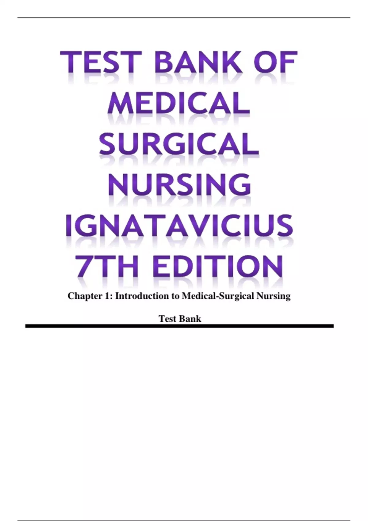 MEDICAL SURGICAL NURSING IGNATAVICIUS 7TH-EDITION TEST BANK VERIFIED QUESTIONS WITH ANSWERS Chapter 1: Introduction to Medical-Surgical Nursing Test Bank MULTIPLE CHOICE Which action demonstrates that the nurse understands the purpose of the Rapid Response Team? a. Monitoring the client for changes in postoperative status such as wound infectio