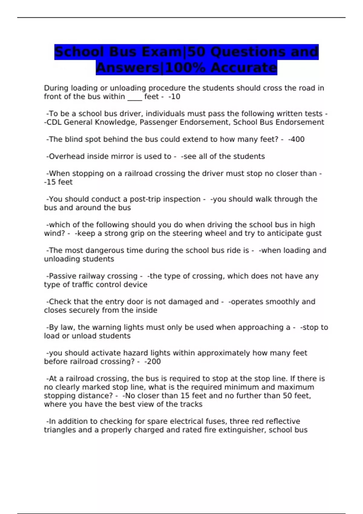 CDL School Bus Exam/44 Questions and Answers/Distinction Graded