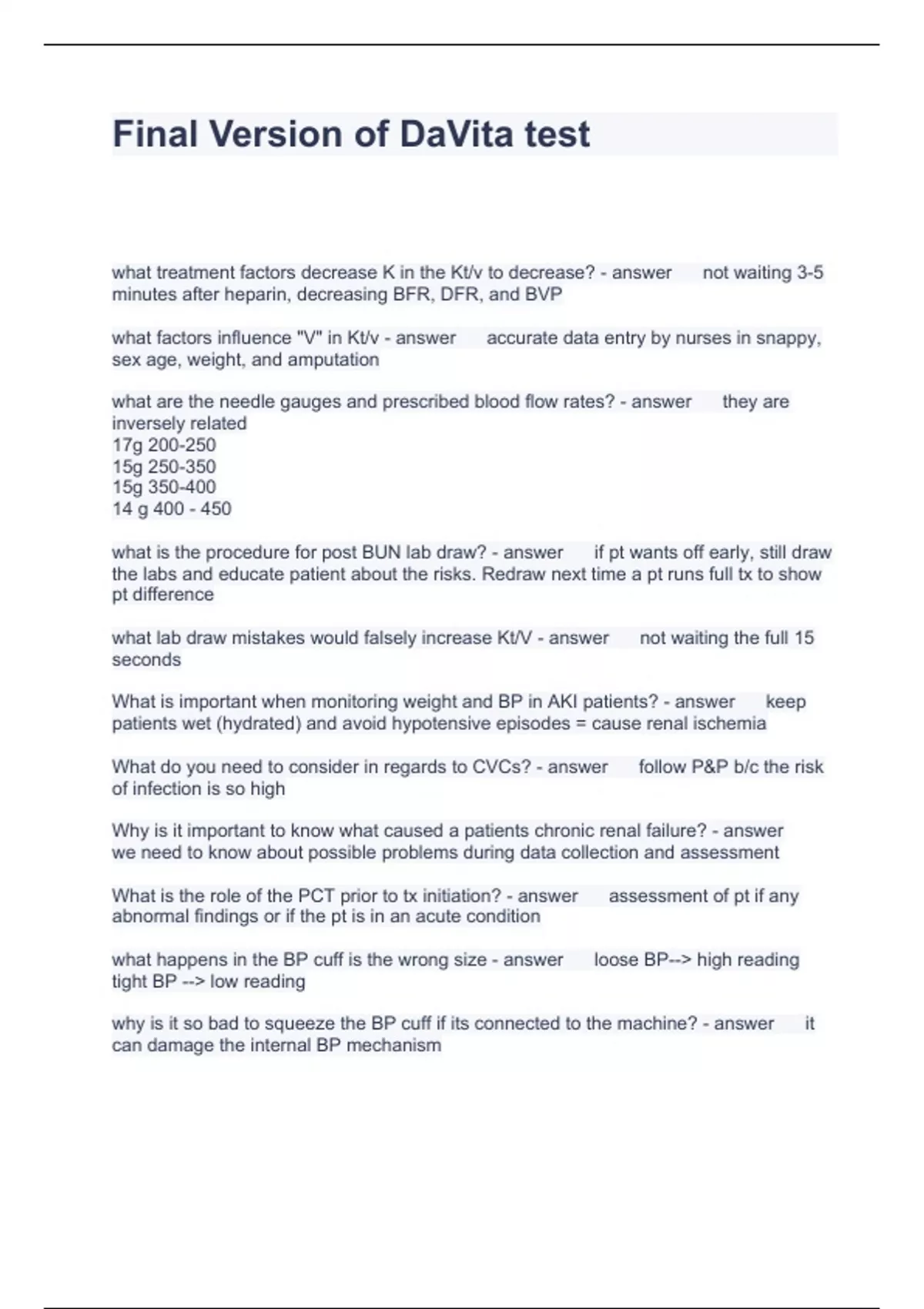 DaVita Test Exam Bundle Graded A