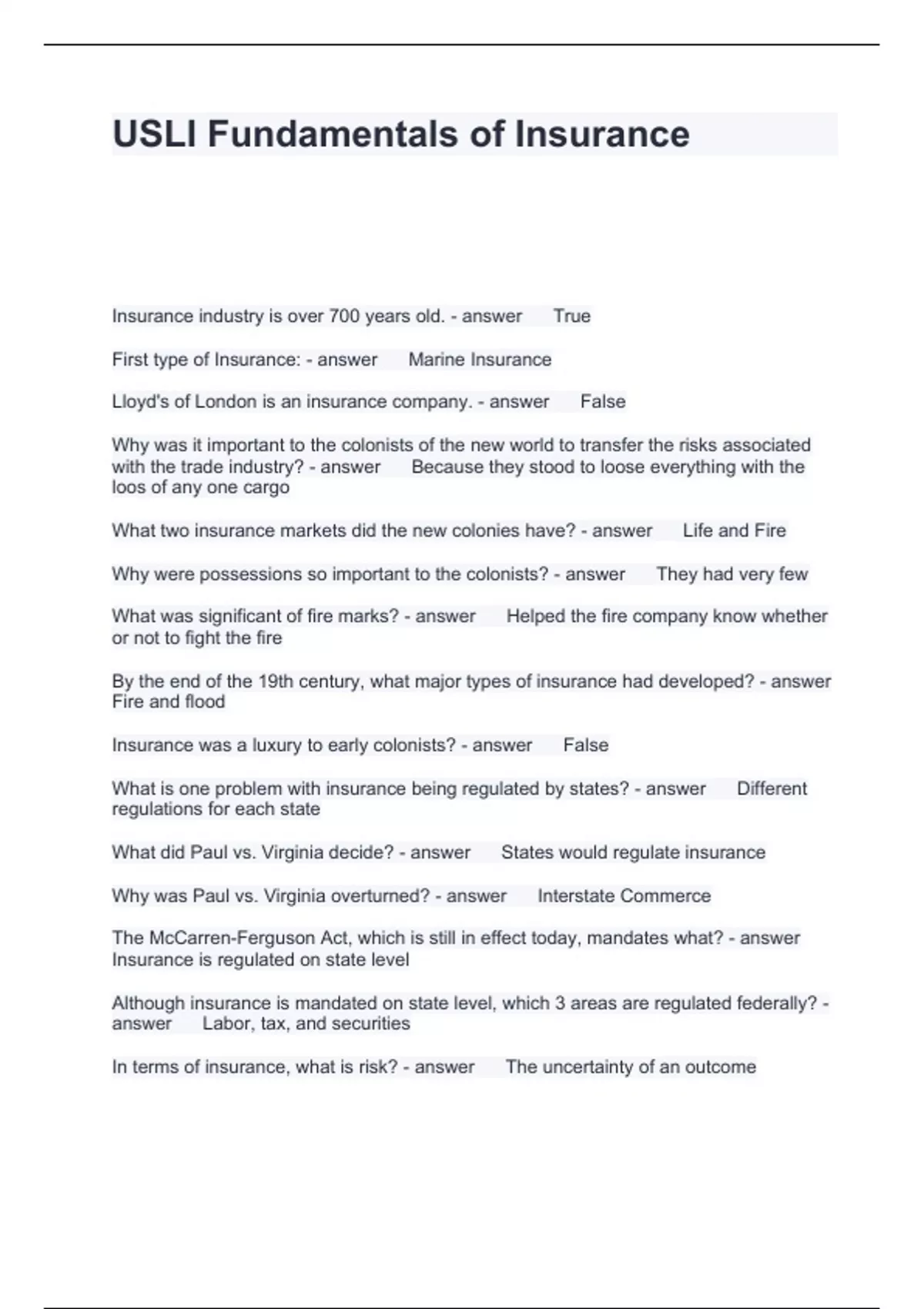 Fundamentals of Insurance Test Compilation Bundle 2024