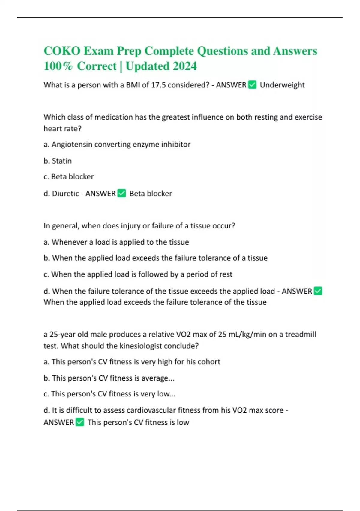 COKO Practice Test Questions and Answers 100% Correct | Updated 2024