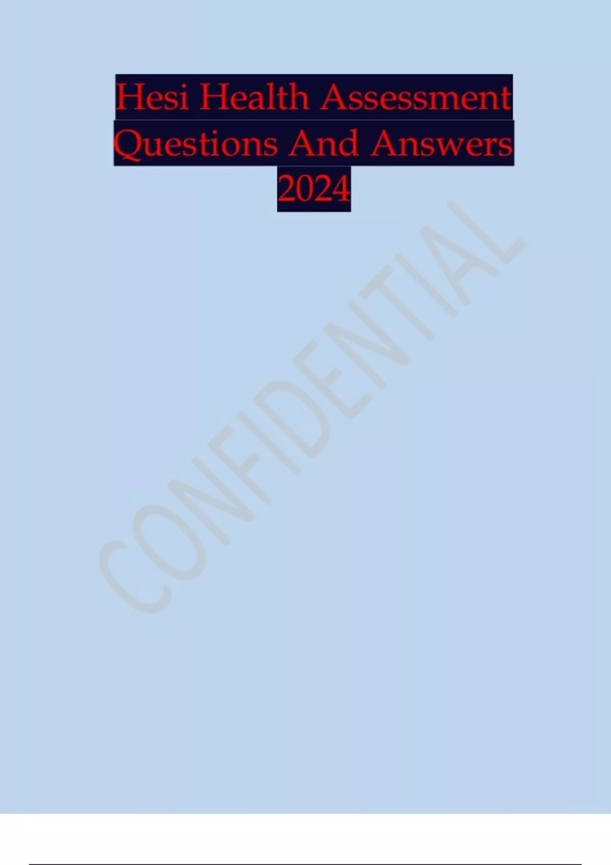 Hesi Health Assessment Questions And Answers 2024 With Valid Questions And Answers Graded A.Hesi Health Assessment 1000 Questions And Answers 2024 With Valid Questions And Answers Graded A. HESI Health Assessment