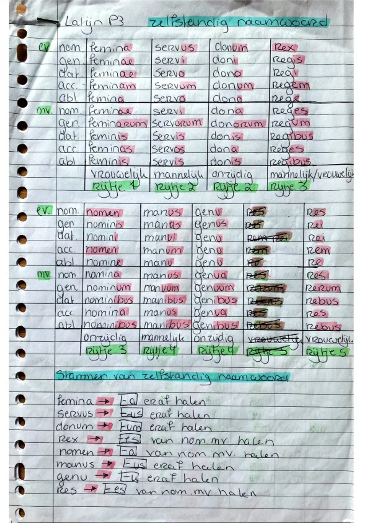 Samenvatting Overzicht - latijn - alle voornaamwoorden en rijtjes