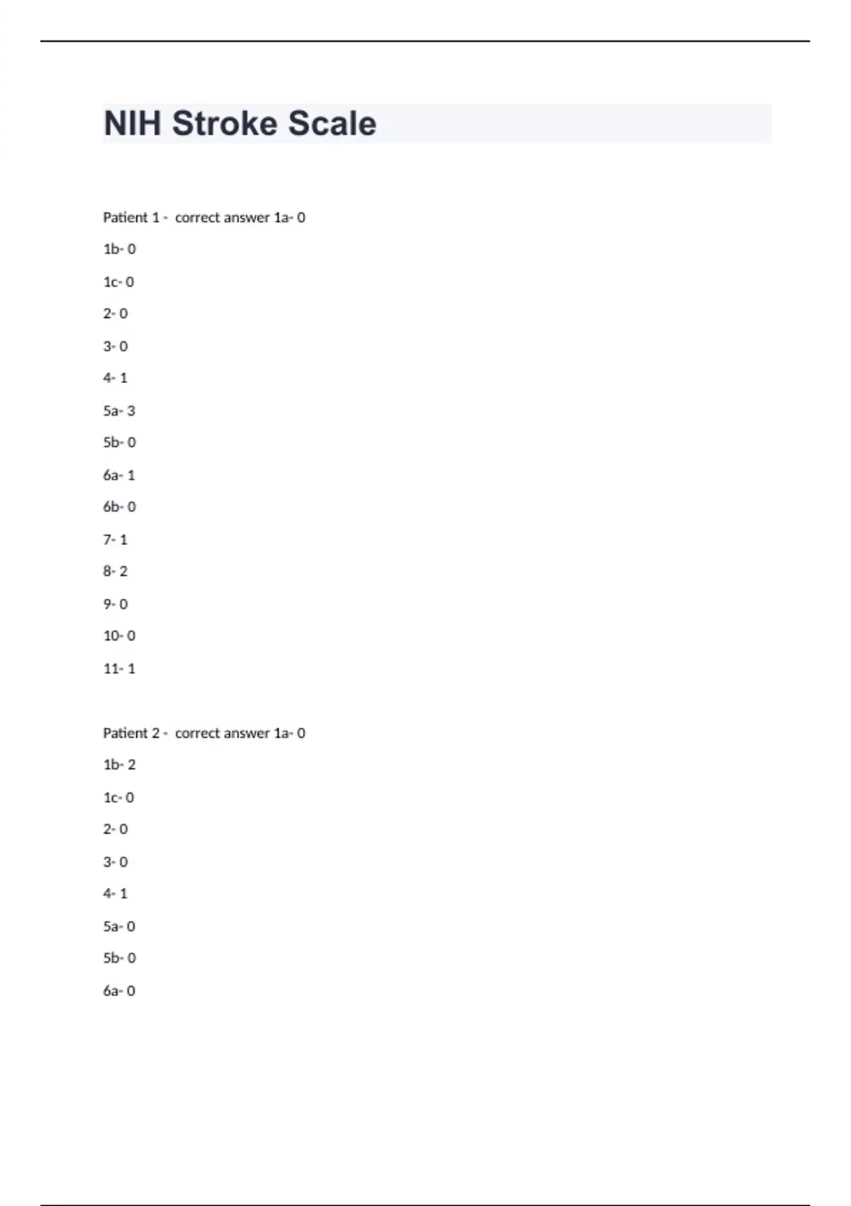 1 Exam (elaborations) NIH Group D question n answers 2024/2025 2 Exam (elaborations) NIH Stroke Scale questions with answers graded A+ 3 Exam (elaborations) NIH Stroke Scale Training and Certification question n answers 2024/2025