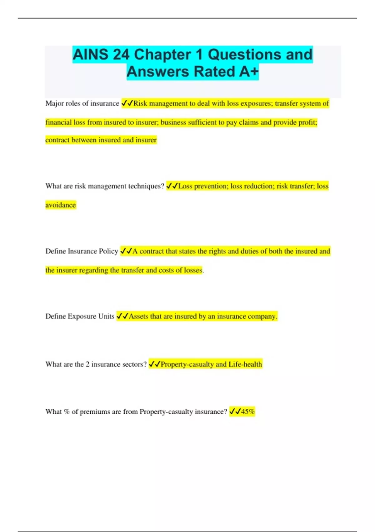 AINS Bundled Exams Questions and Answers Multiple Versions Latest Updates (2024/2025) (Complete and Accurate)