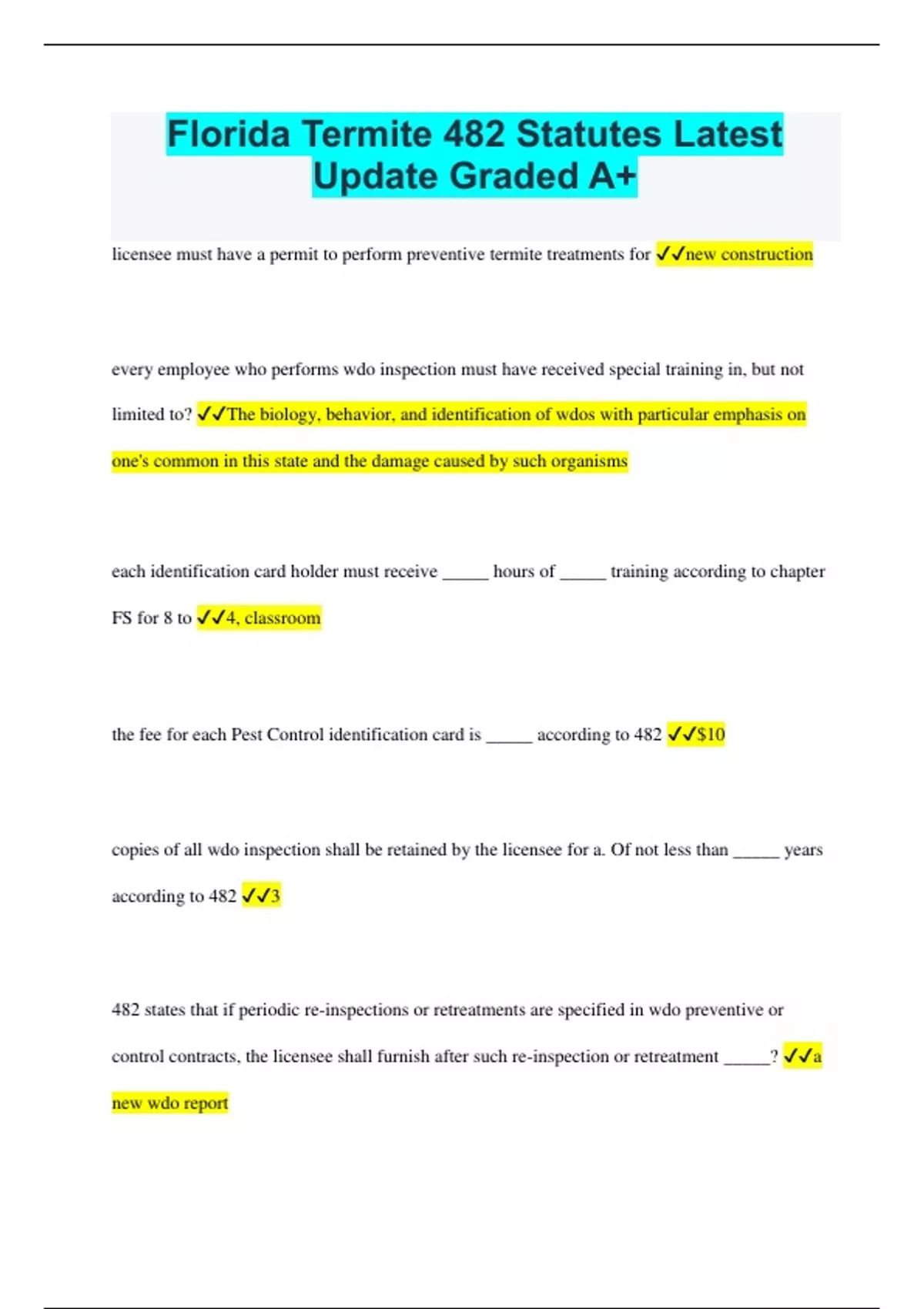 Florida Termite 482 Statutes Latest Update Graded A+