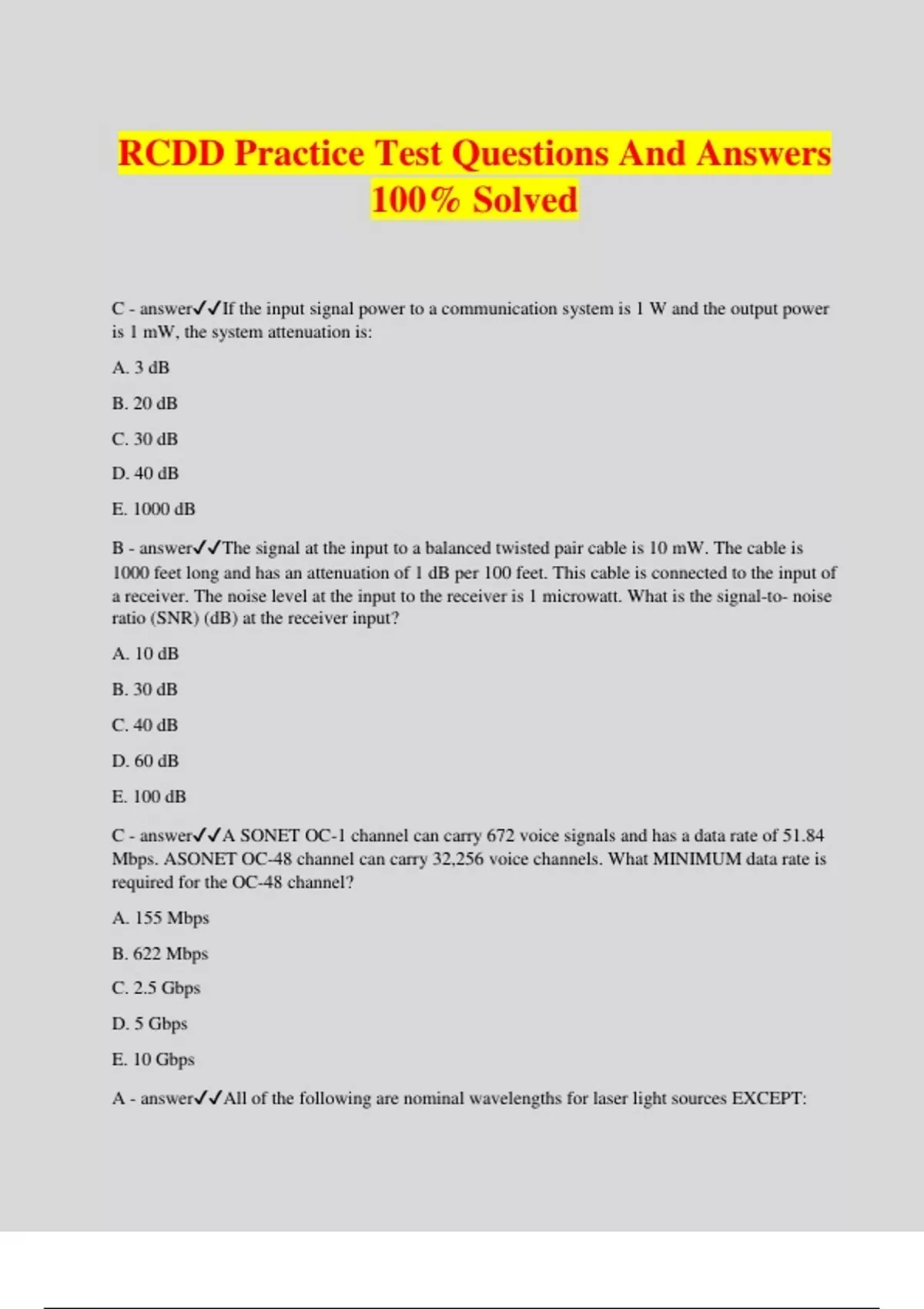 RCDD Practice Test Questions And Answers 100% Solved