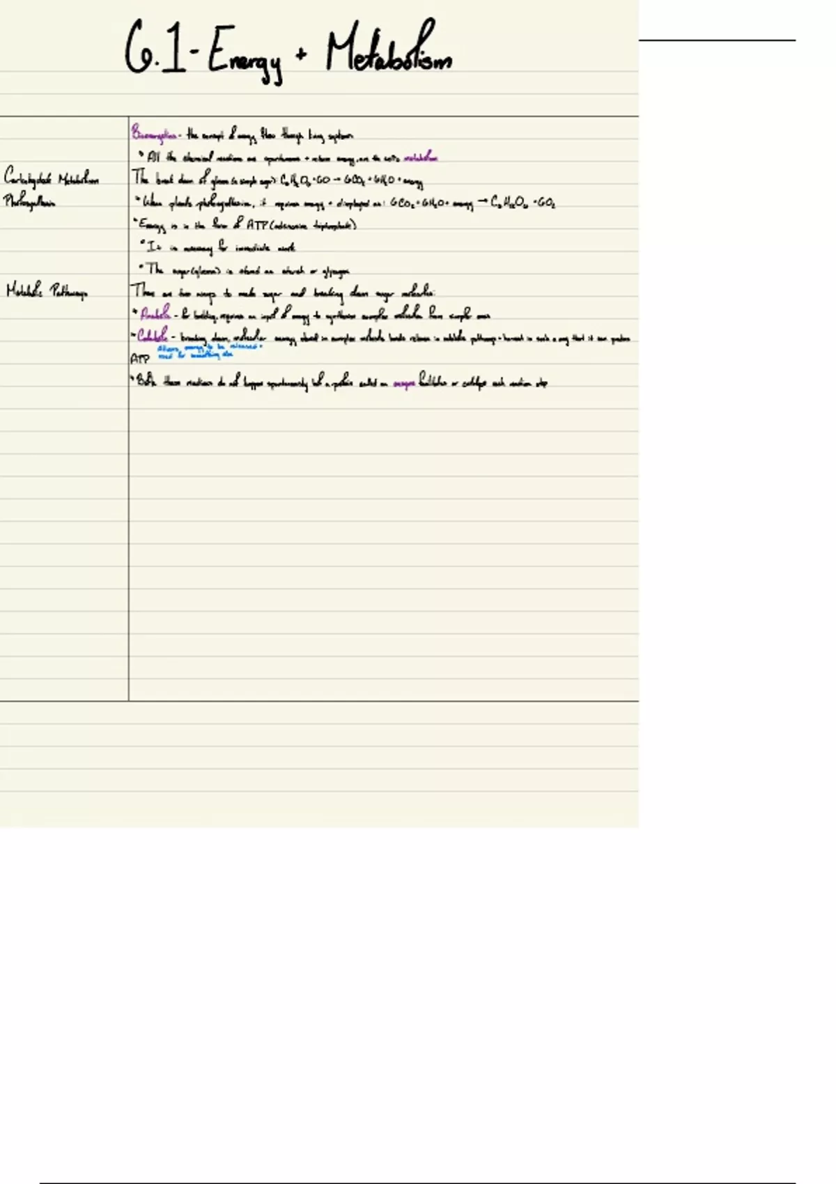 Metabolism and Specific Types