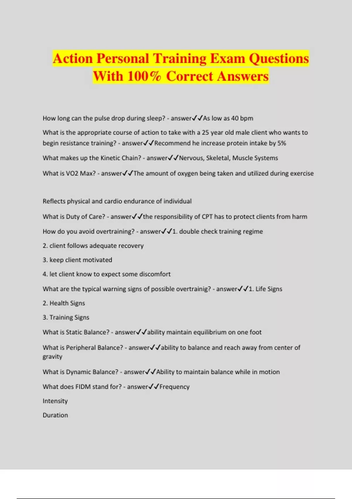 Action Personal Training Bundled Exams 2024/2025 with complete solutions