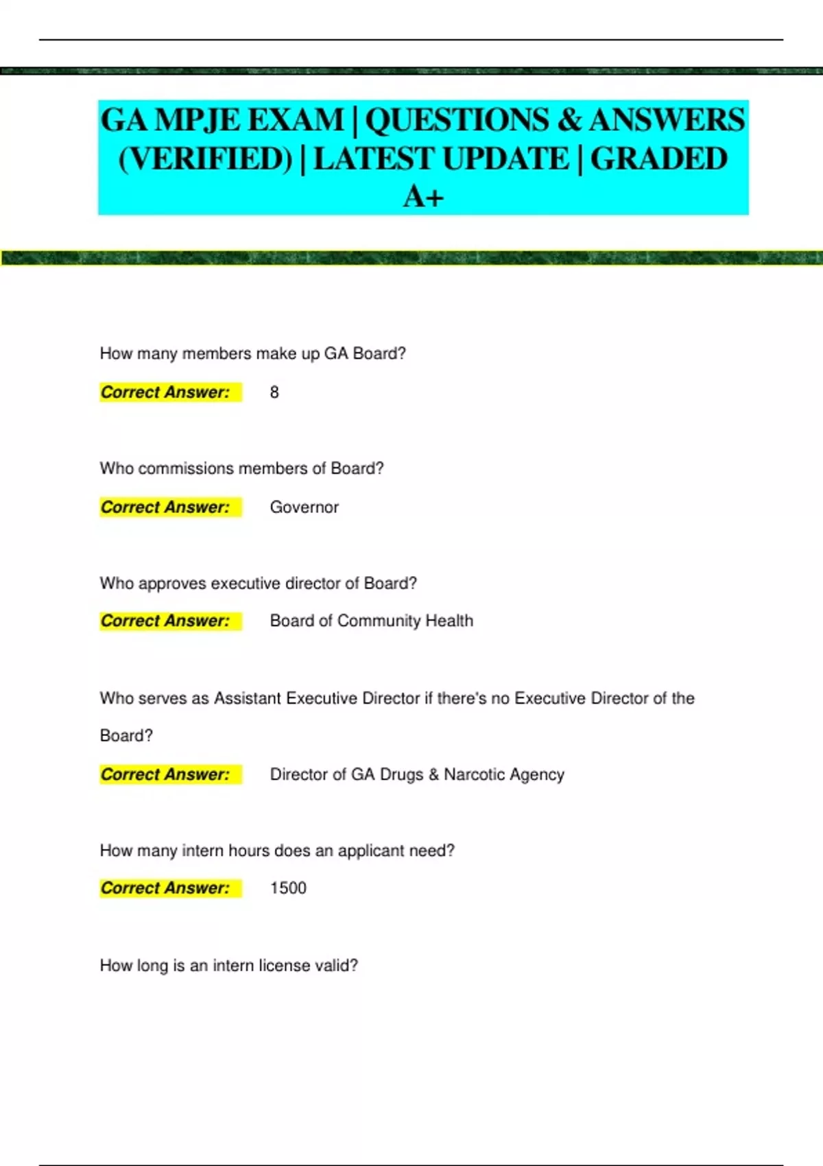 GA MPJE EXAM |PACK QUESTIONS & ANSWERS (VERIFIED) | LATEST UPDATE | GRADED A+