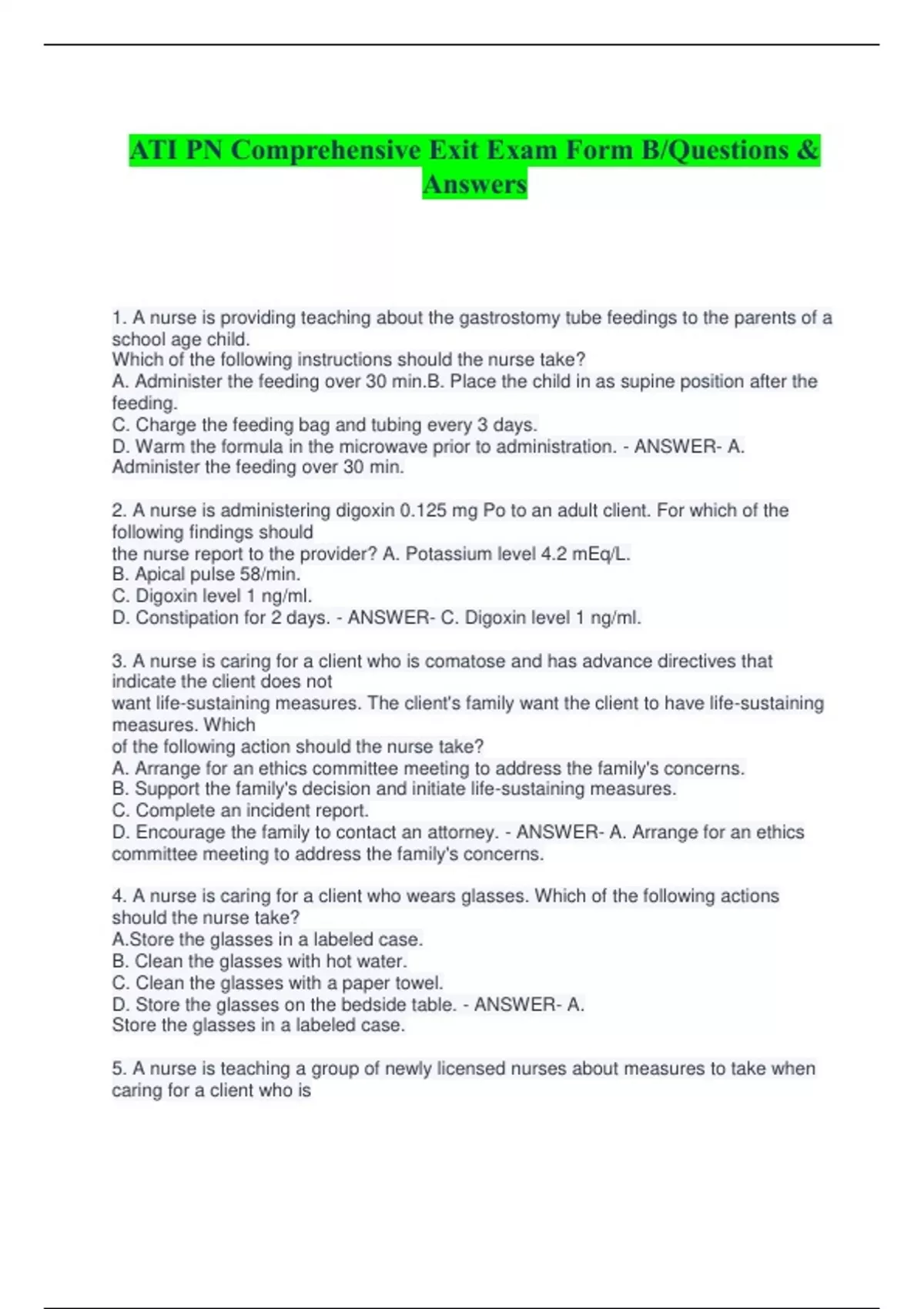 ATI PN Comprehensive Exit Exam Form B/Questions & Answers