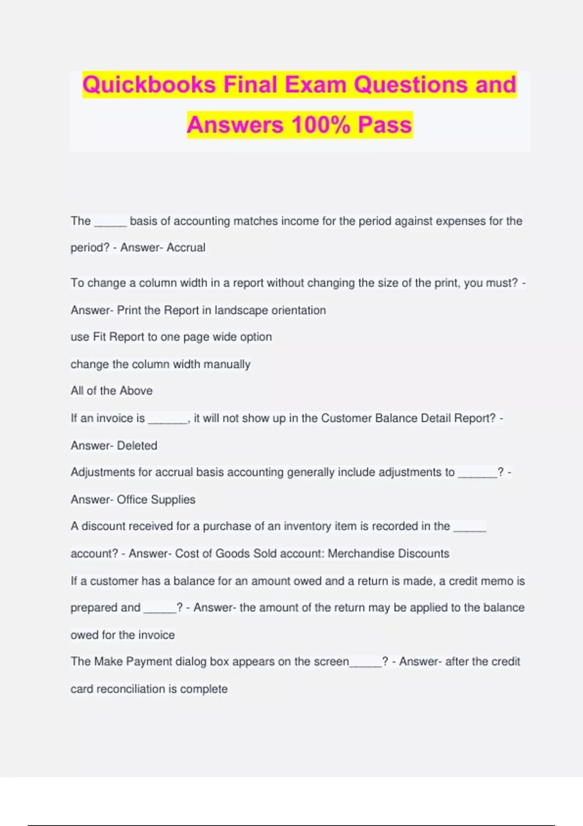 Quickbooks Final Exam Questions and Answers 100% Pass