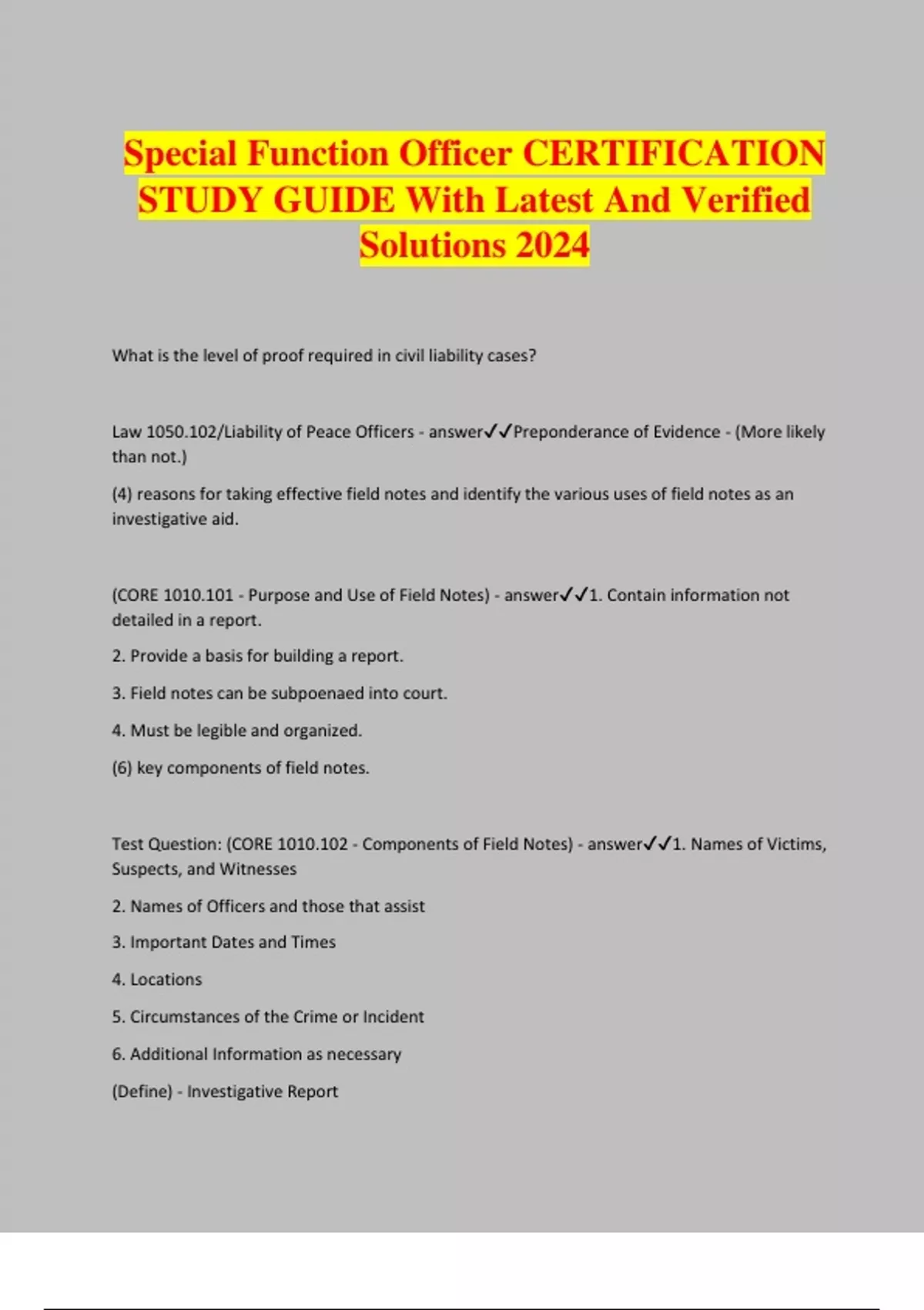Special Function Officer CERTIFICATION STUDY GUIDE With Latest And Verified Solutions 2024