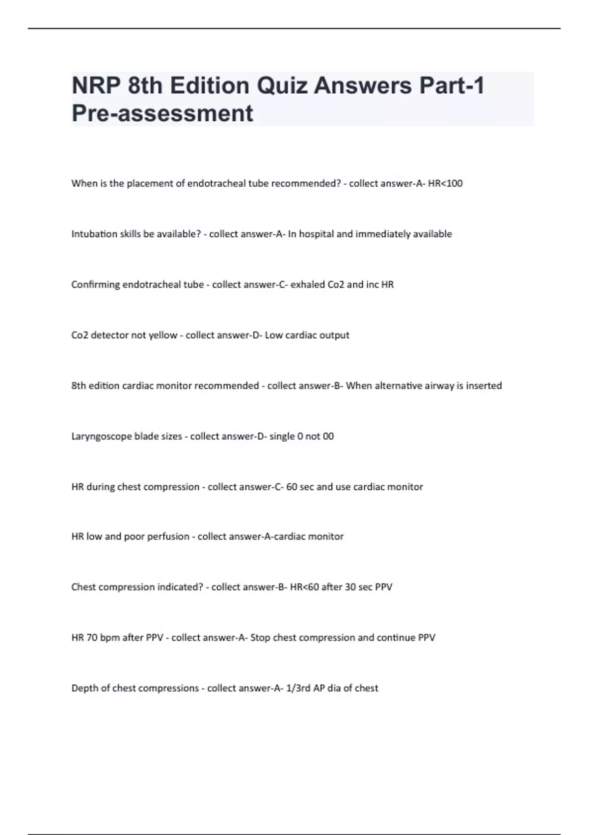 NRP 8th Edition Questions with Verified Answers NRP 8th Edition Study Guide latest updated (Graded A) NRP 8th Edition 2023 Questions and Answers NRP 8TH EDITION FINAL EXAM 2023 QUESTIONS AND ANSWERS NRP 8th Edition Questions and Answers (Graded A) NRP 8th Edition Test with complete solutions NRP 8th Edition Quiz Answers Part-1 Pre-assessment
