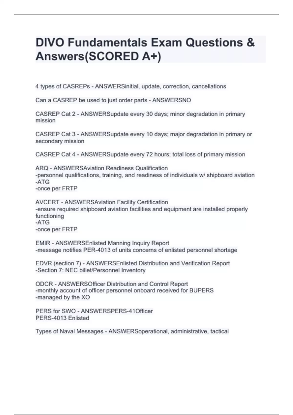 BDOC DIVO FUNDAMENTALS EXAM BUNDLE!!