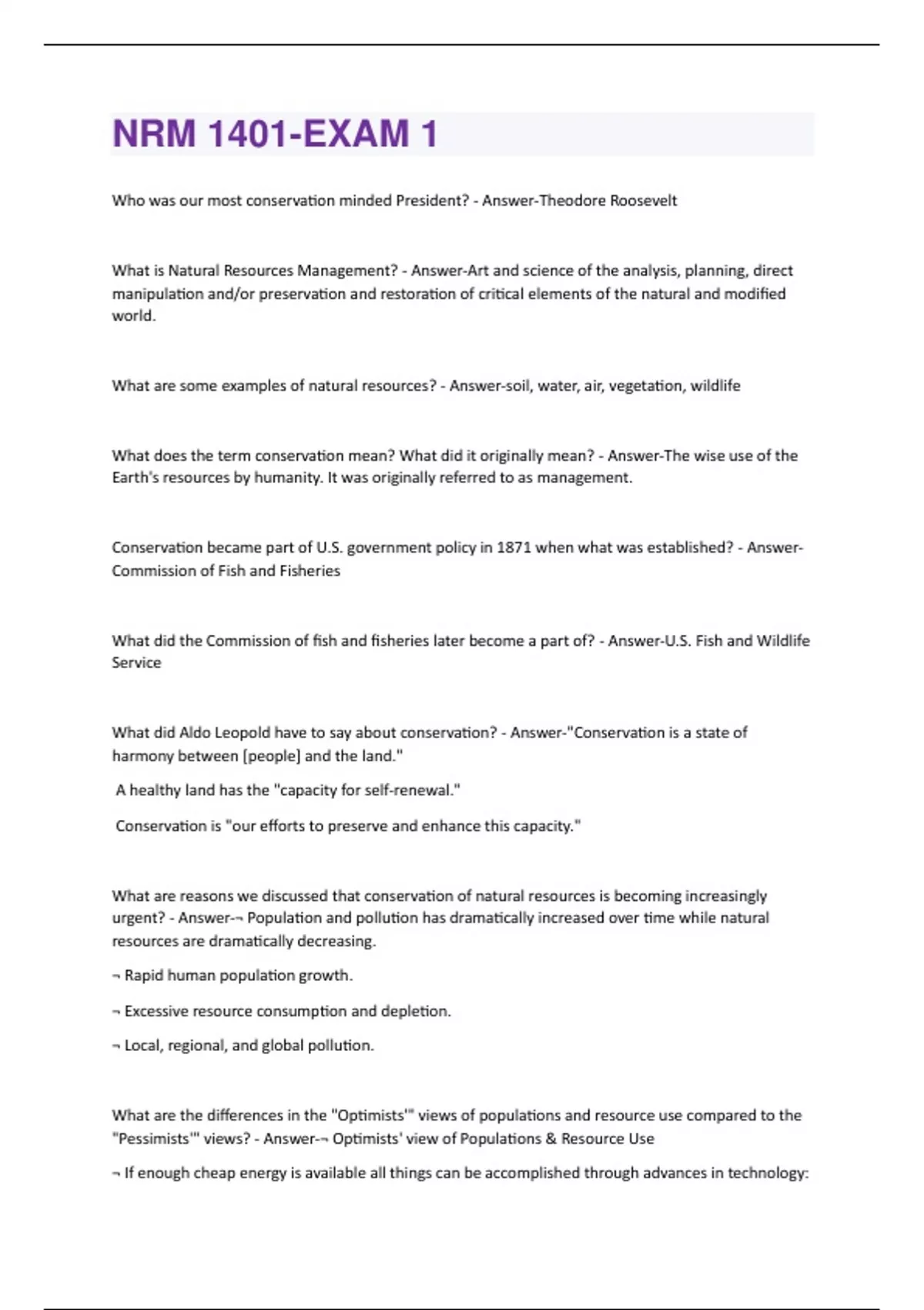 NRM 1401 EXAM PACKAGE DEAL SOLVED 100% CORRECT!!
