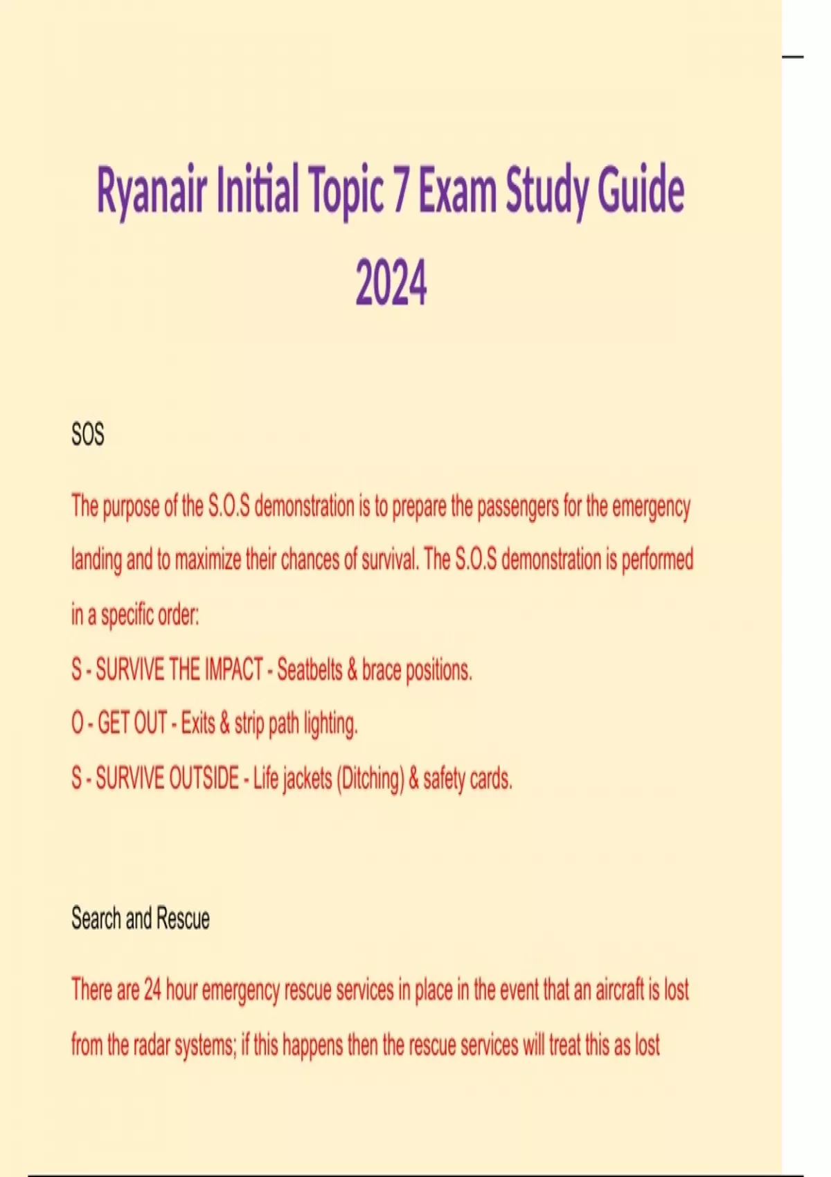 Ryanair Initial Topic 3 – Ryanair Study Guide Latest 2024