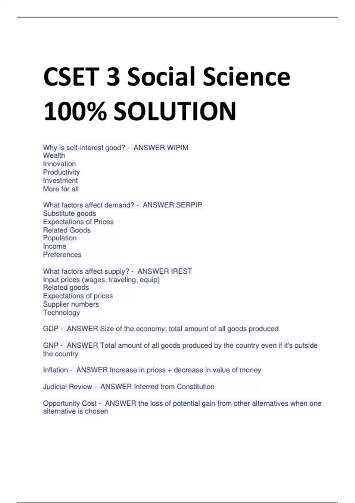 CSET Social Science 100% SOLUTIONS