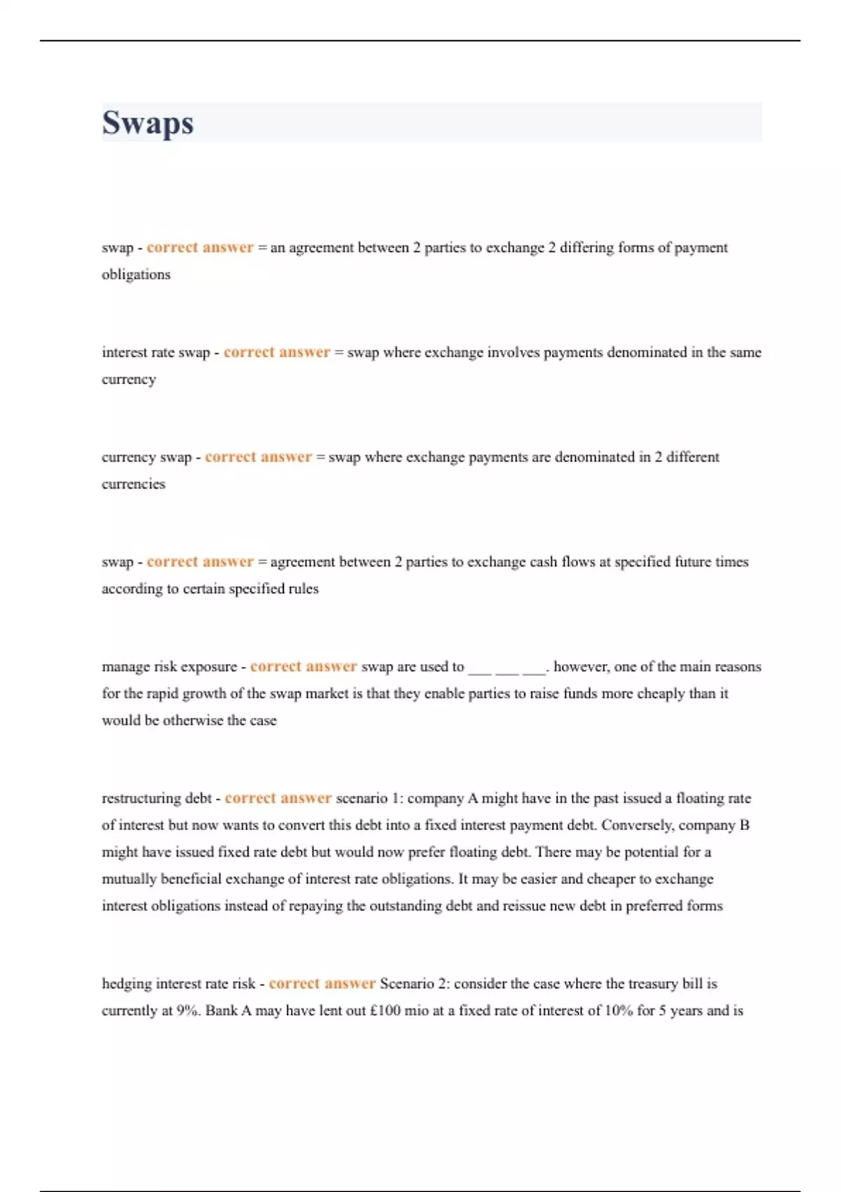 Swaps 1 Questions Correctly Answered 2024.