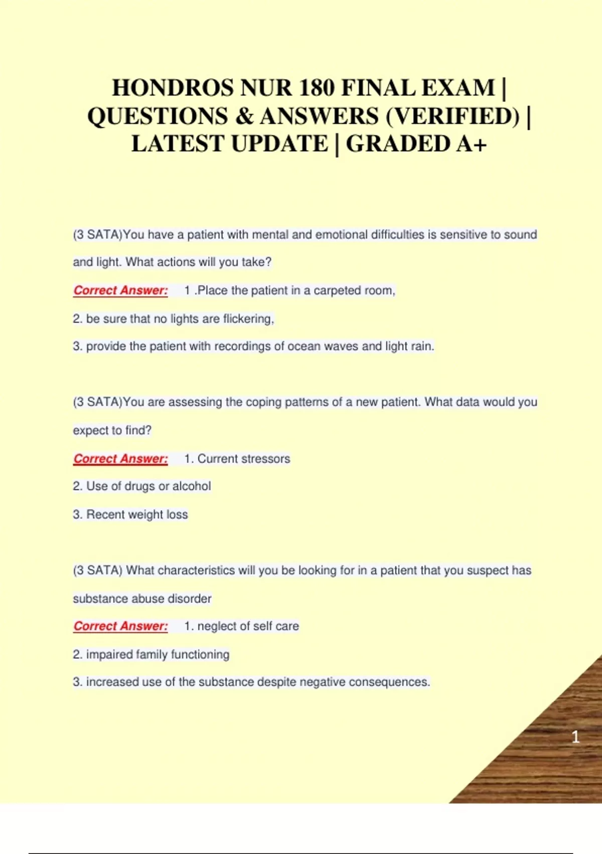 HONDROS NUR 180 EXAM | QUESTIONS & ANSWERS (VERIFIED) | LATEST UPDATE | GRADED A+