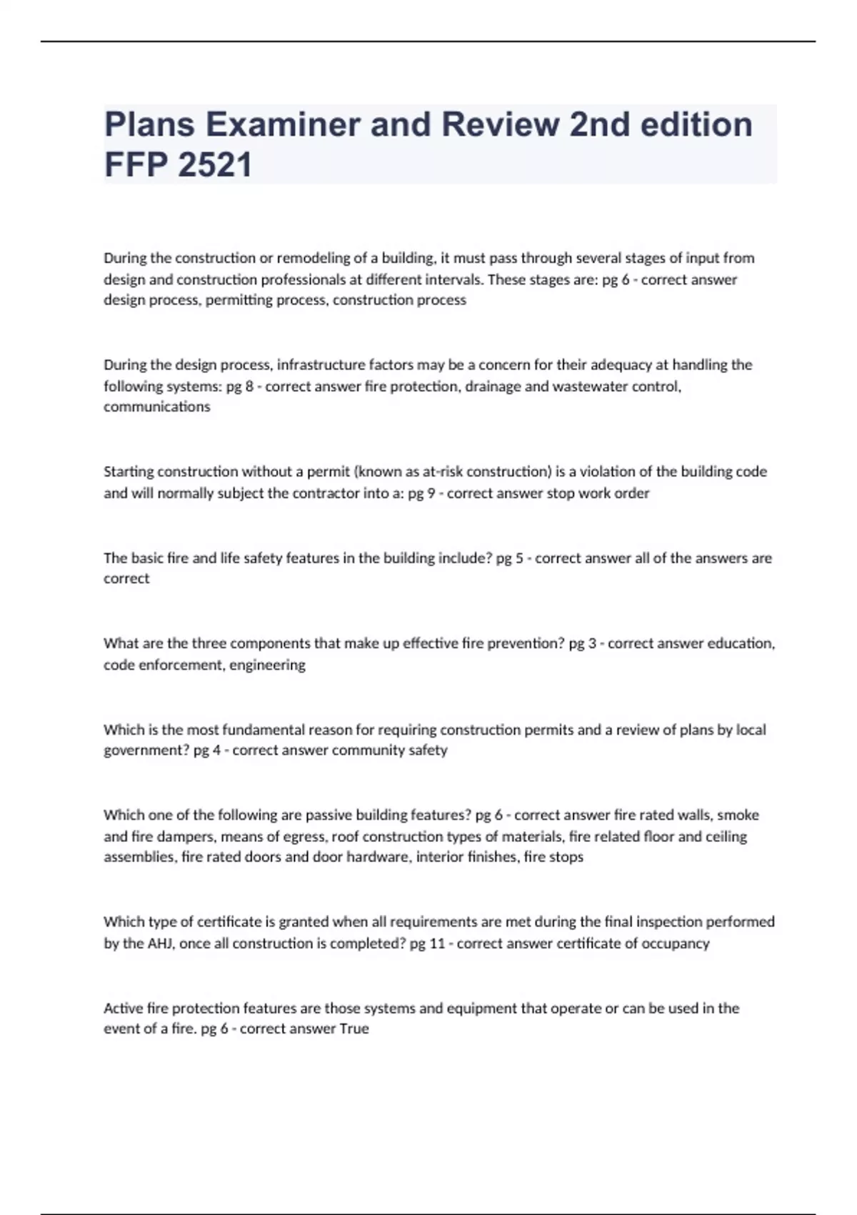 Plans Examiner And Review 2nd Edition FFP 2521 Questions & Answers 2024.