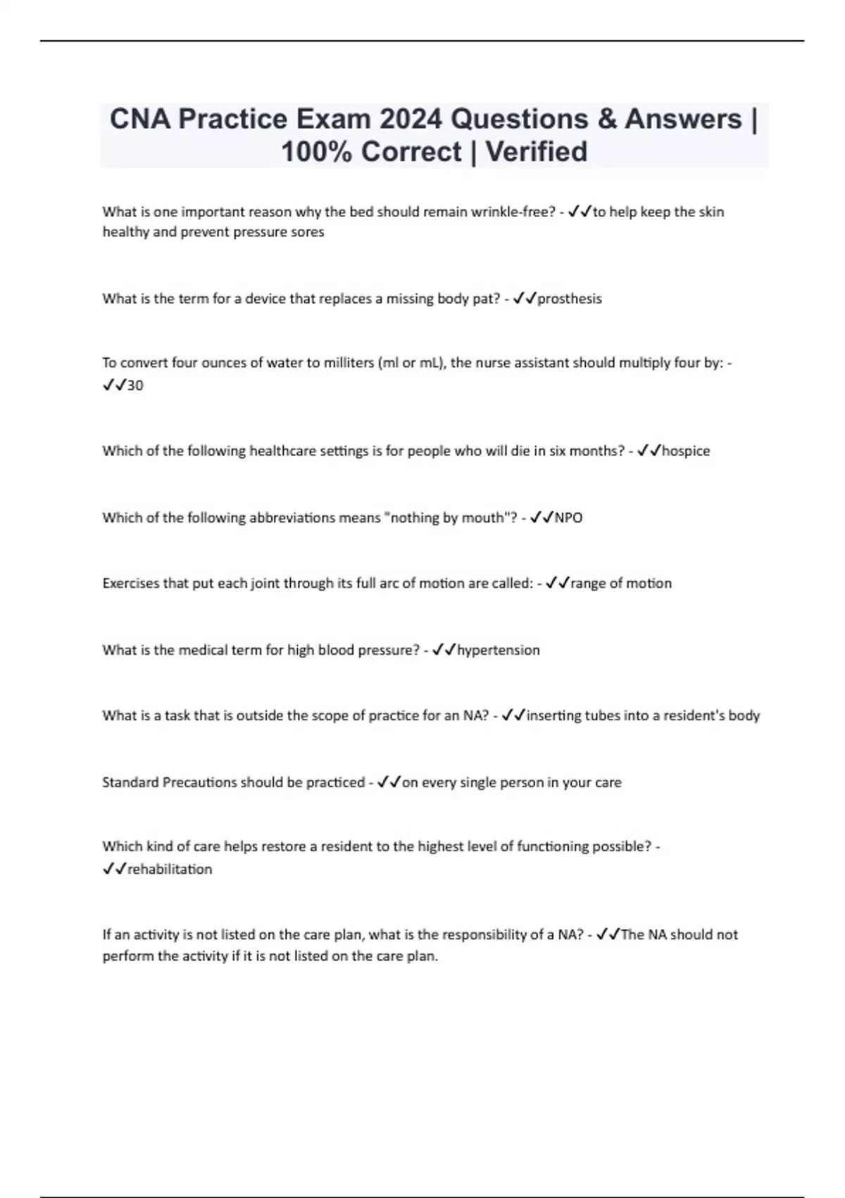 CNA Practice Exam 2024 Questions & Answers | 100% Correct | Verified