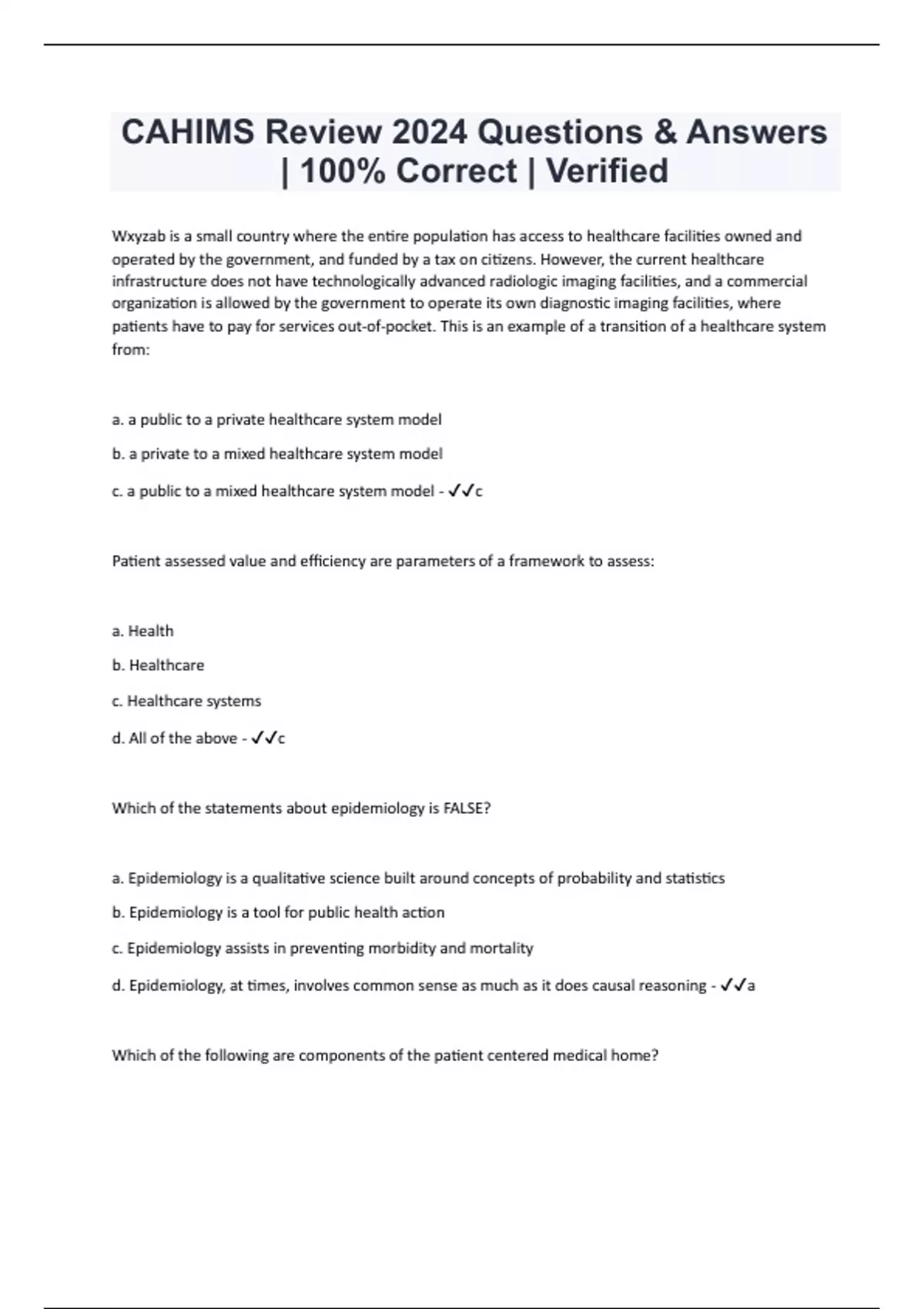 CAHIMS Review 2024 Questions & Answers | 100% Correct | Verified