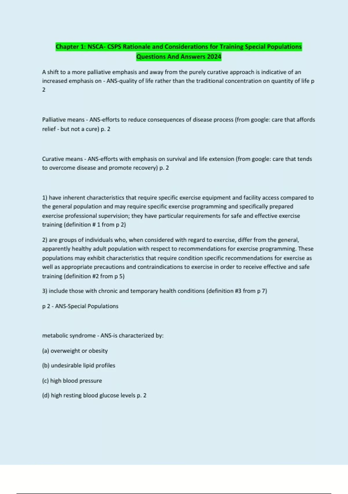NSCA CPSS QUESTIONS AND ANSWERS EXAM REVIEW A+ 2024, NSCA Essentials of Sport Science Questions & Answers A+, NSCA CPSS Chapter 2: Training Load Model Exam Review Update 2024 A+, NSCA CPSS Chapter 6- Profiling and Benchmarking Qs&As, NSCA CPSS Chapter 8: