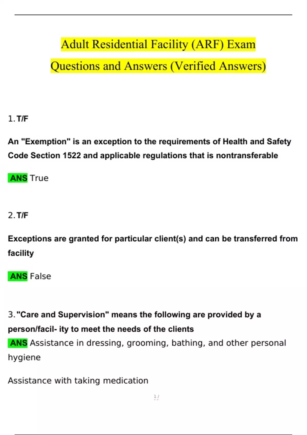 ADULT RESIDENTIAL FACILITY (ARF) EXAM STUDY SET LATEST BUNDLE PACK SOLUTION (VERIFIED) ADULT RESIDENTIAL FACILITY (ARF) EXAM STUDY SET LATEST BUNDLE PACK SOLUTION (VERIFIED)