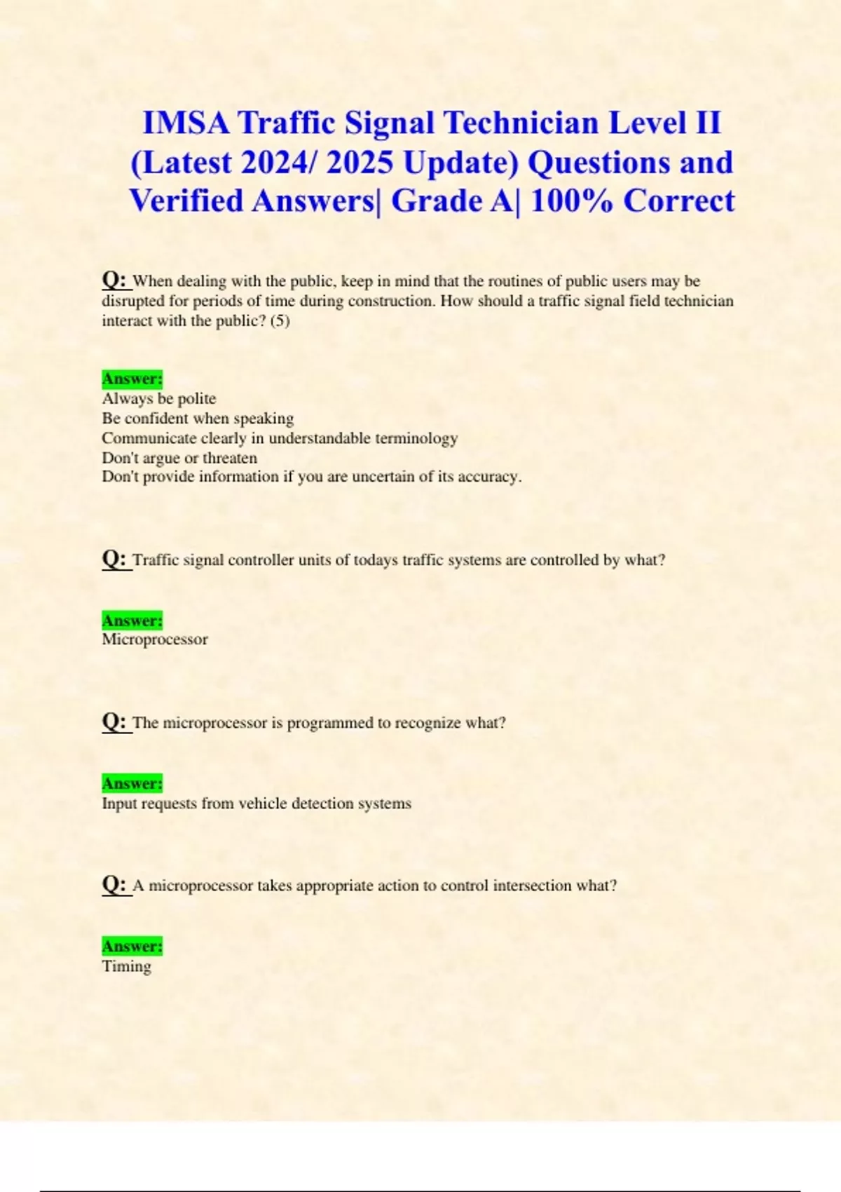 Traffic Signal Technician Level II (Latest 2024/ 2025 Update) Questions and Verified Answers| Grade A| 100% Correct