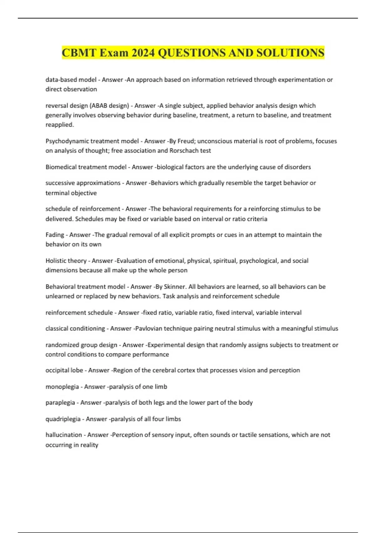 CMBT Complete BUNDLED Exams and Solutions 2024 Updated. CMBT Prep, Retake, Form B, Music Therapy.