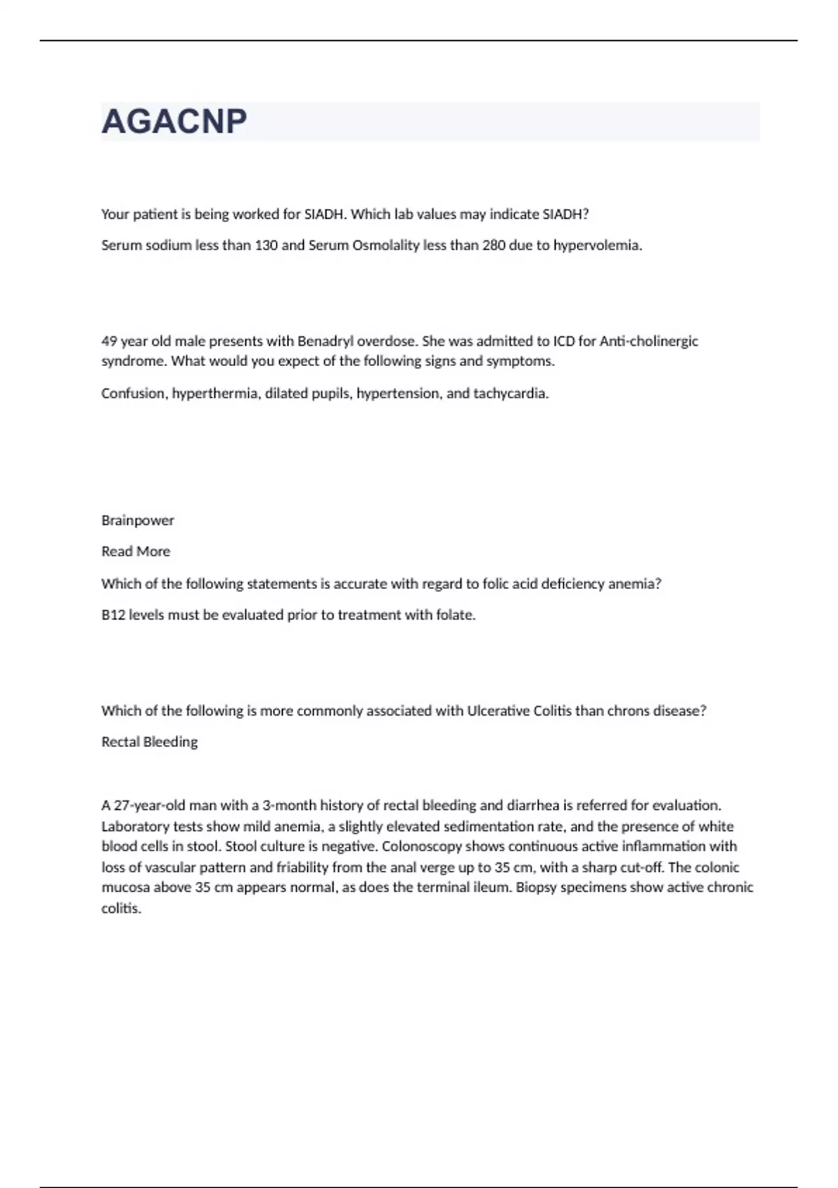 AGACNP 106 EXAM 2024 WITH 100% CORRECT ANSWERS AGACNP 106 EXAM 2024 WITH 100% CORRECT ANSWERS