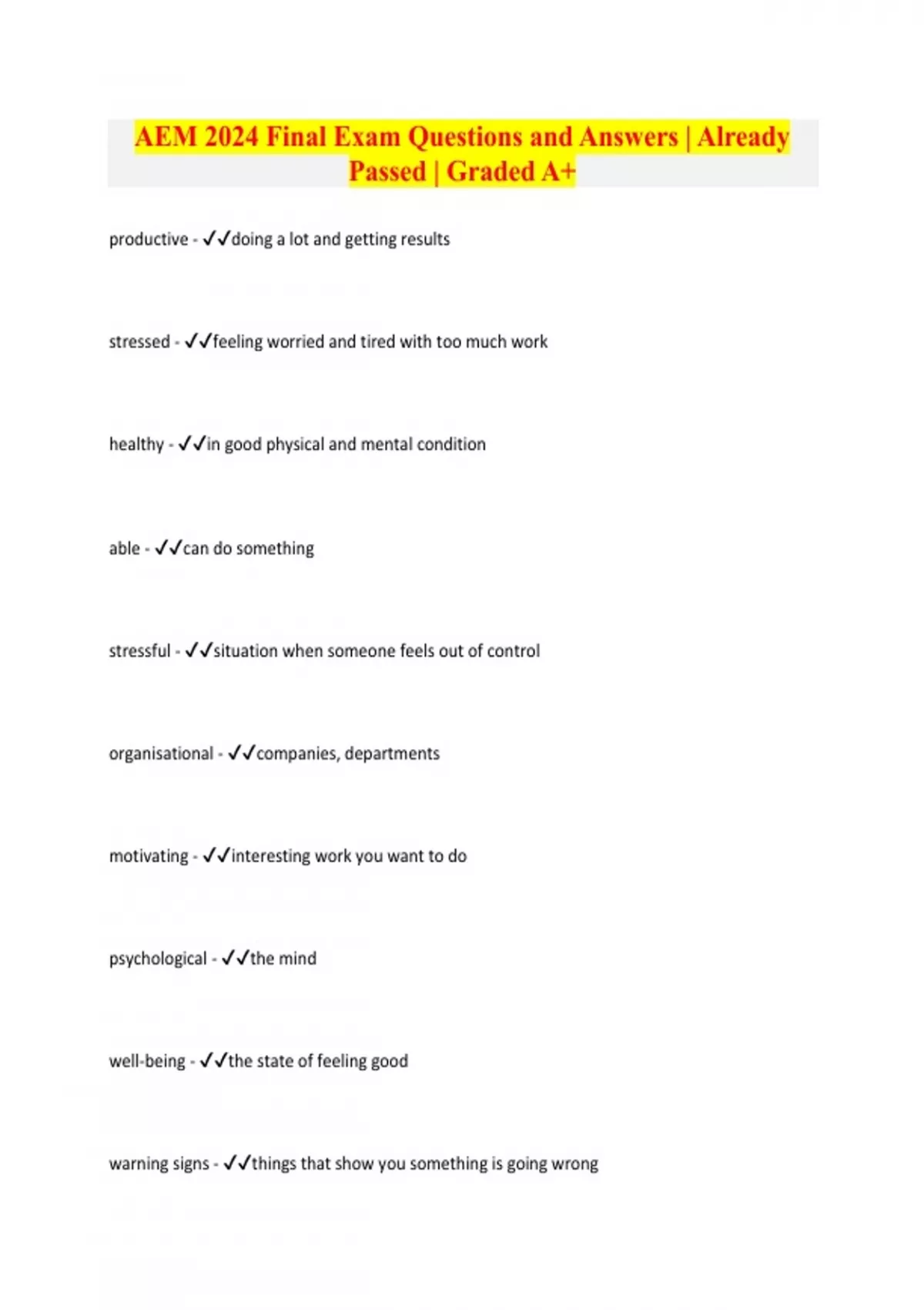 AEM 2024 Final Exam Questions and Answers | Already Passed | Graded A+